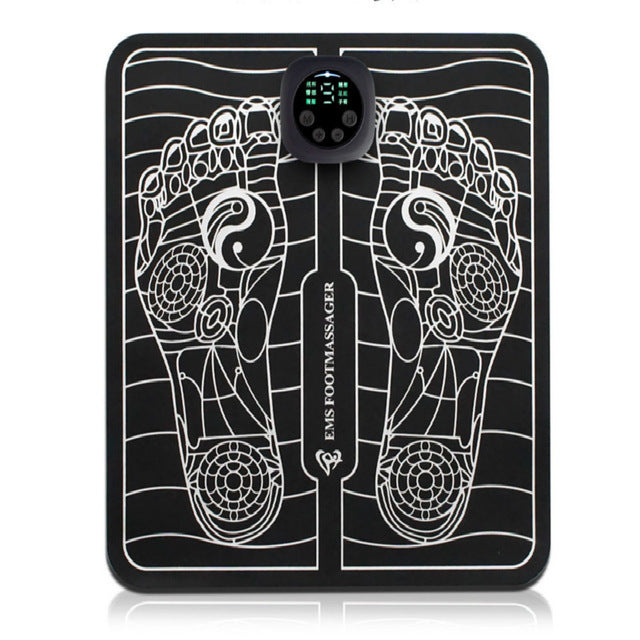 Stop living in pain and welcome the EMS Foot Massage into your life! This device is the perfect way to pamper yourself, relieve fatigue, and improve circulation. It is easy to use with one simple switch and USB charging, also making it very portable so you can take it with you wherever you need some relief. The EMS Foot Massage uses modern medical technology to simulate foot massage techniques used by professional therapists. Its high-tech design allows it to accurately target the reflex points in your feet for the most enjoyable massage experience. Working within a range of 0-18Hz frequency, this device massages all areas of your foot from top to toe â toes, arch, heel, ankle, calf and even up to your knee! Each session is adjustable with 9 levels of intensity for customized relaxation. Say goodbye soreness and fatigue with just one use of our EMS Foot Massage! Invest in this essential health care device today and say hello to relaxation and comfort any time you need it. Give yourself a spa-quality pedicure at home with ease or treat someone special with a gift they will greatly appreciate. The EMS Foot Massage is the perfect solution for tired bodies everywhere - purchase yours today!